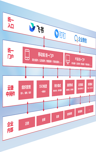 对协作平台提供支持服务,,支持企业应用与协作平台对接,,包含组织同步、、消息集成、、、、待办集成等。。。支持目前主流的协作平台:钉钉、、、企微和飞书。。。
